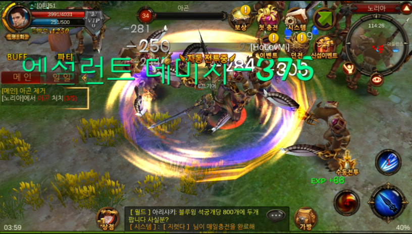 사냥 같은 경우도 [수동전투] & [자동전투] 를 지원하기 때문에 편하게 플레이가 가능하고 화려한 액션도 볼 수 있고